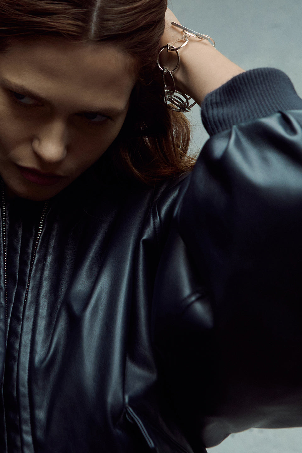 A bold play of polished silver circles, seamlessly linked in a flowing rhythm. Sculptural yet effortless, this piece invites movement and makes a statement with every gesture.